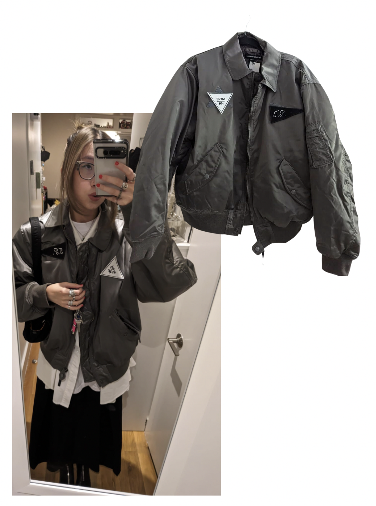 Okay yes lets address the elephant in the room, this jacket is made by Gosha Rubchinskiy. As we are now in 2023 I think it’s safe to say that no one misses Gosha, right? If you have no idea what I’m talking about then here is the most recent video I can find about the situation https://www.youtube.com/watch?v=E6lhy0OM-cI. But this bomber jacket has brought me a sense of safety that only my tattered childhood blanket can. I have owned bomber jackets in the past but none of them are quite as cool as this one. The interesting color, oversized shape and collared neckline make this jacket incredibly special to me. As a gal who likes to customize, the removable patches make me excited to find something that I can use to replace the ones that came with the jacket.